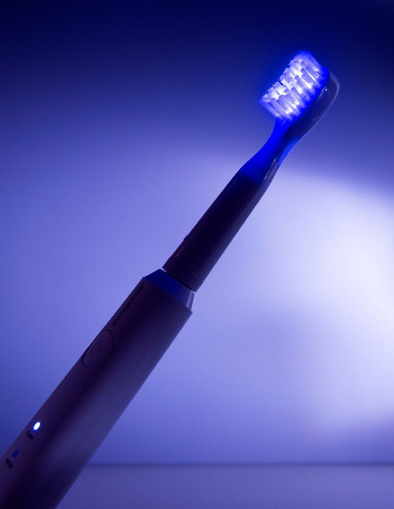 Our Vibrite™ BLUE Sonic Blue LED Light Whitening Toothbrush vibrates at 40,000 brush strokes per minute, has five modes to customize the brushing experience and a timer to help ensure you brush for the recommended amount of time.