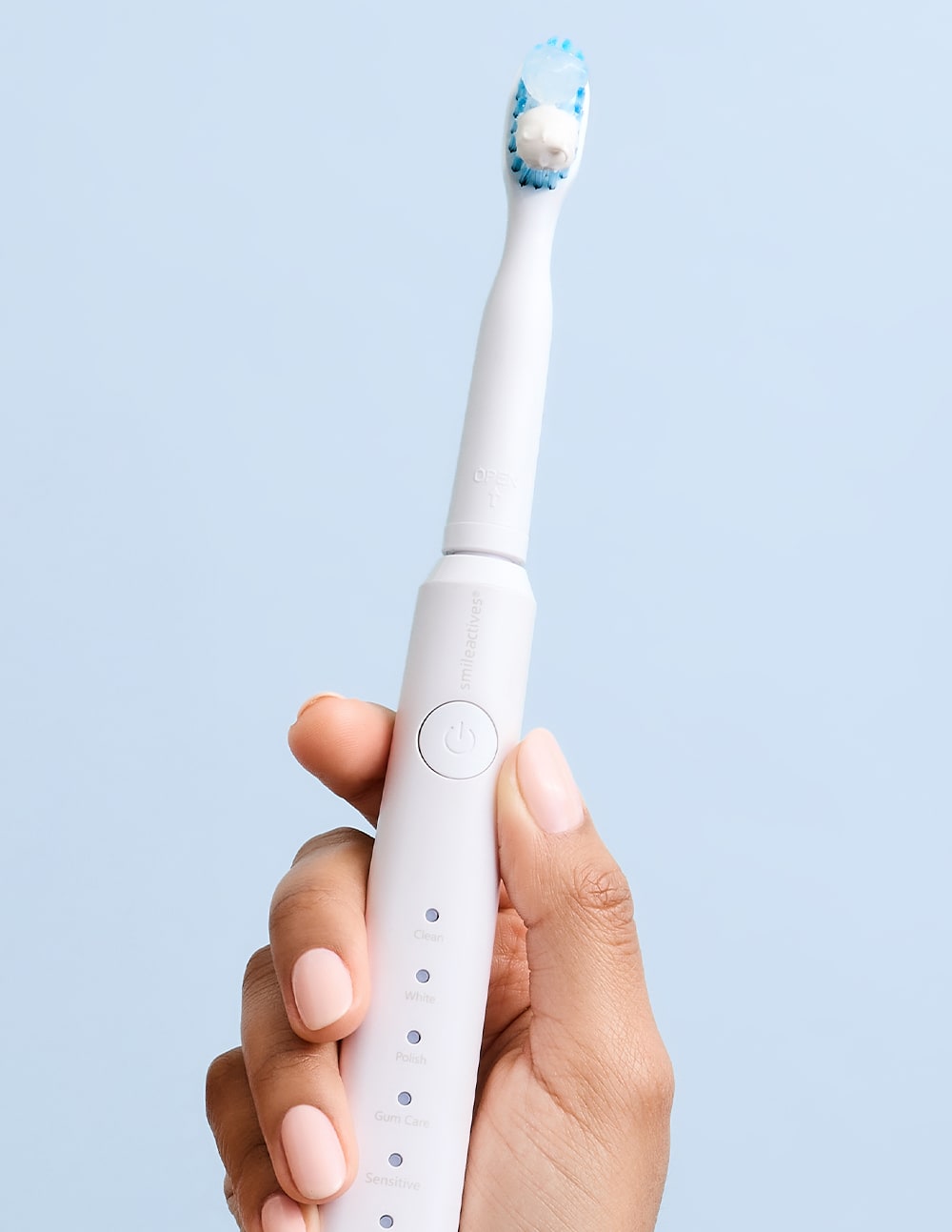 - Gently wipe clean all surface areas on the toothbrush handle and the blue light extension rod, then slide on new replacement brush head and press firmly down into place. Use as normal.