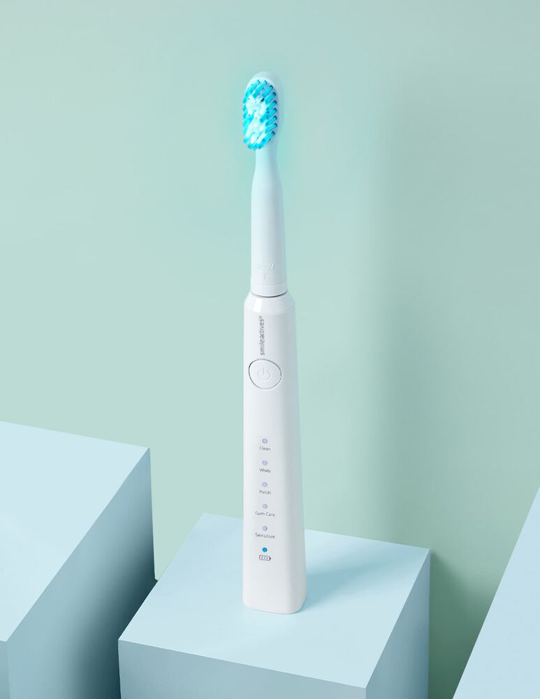 Our Vibrite® BLUE Sonic Blue LED Light Whitening Toothbrush vibrates at 40,000 brush strokes per minute, has five modes to customize the brushing experience and a timer to help ensure you brush for the recommended amount of time.